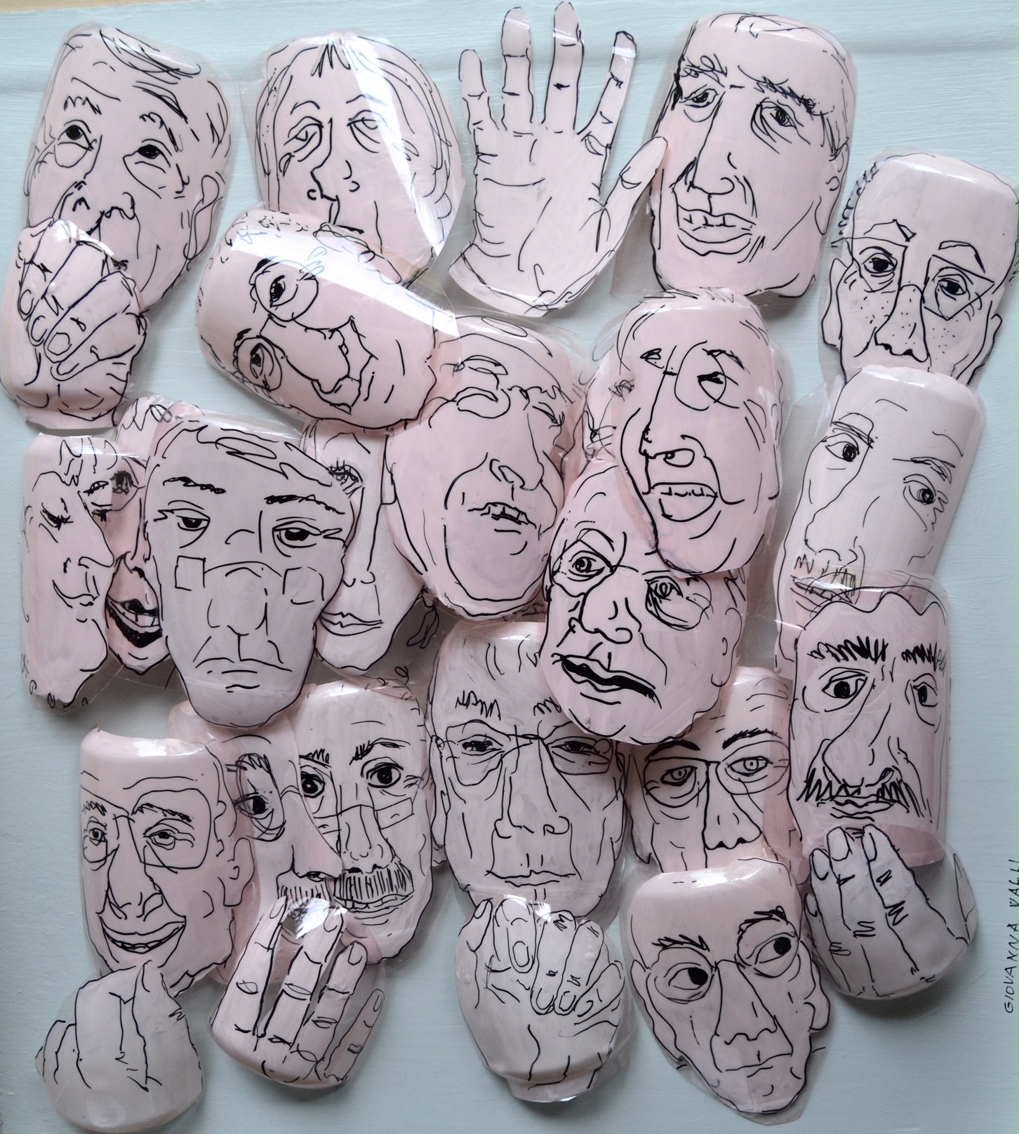 collage, drawings on polyethylene
