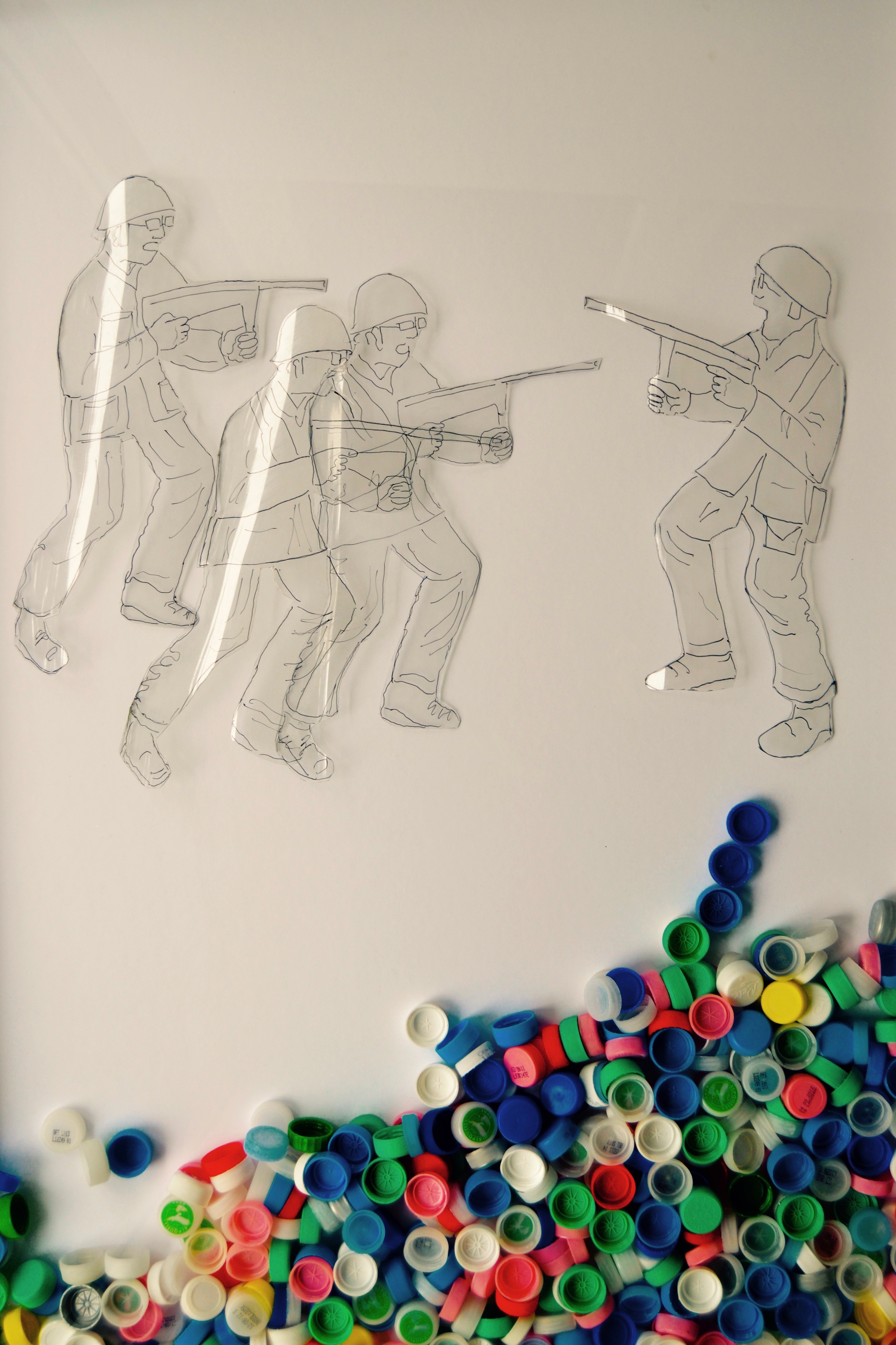 Drawing on paper and two superposed pvc plates 3D